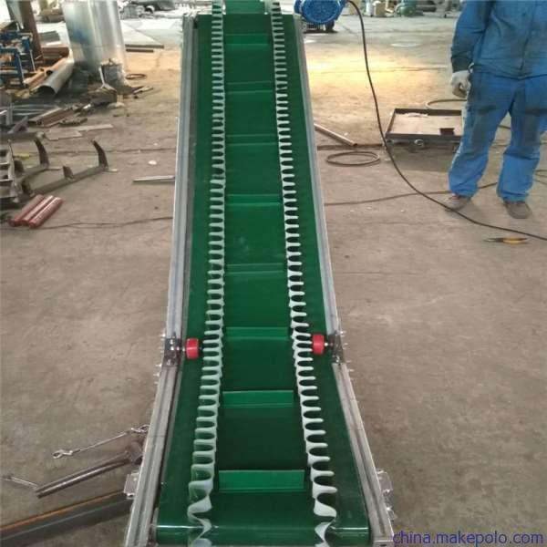 3Z型帶式輸送機具有波紋壁,同時皮帶上設計了橫向隔板,周邊的裙邊設計,在輸送過程時不易散落物料。